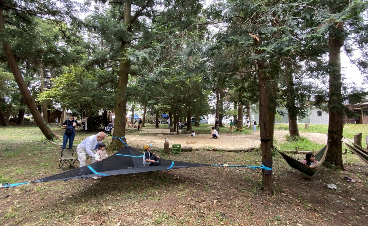 イベントは開放型(出入り自由)と募集型(事前申し込み)の2種類で、森の中で木登り、ハンモック体験、焚火、秘密基地づくりなど、様々な森遊びを行うとともに、社会福祉協議会や地域の団体に協力していただき、縁日を出してもらう仕組みで開催し、毎回、のべ100~200名の参加者がありました。